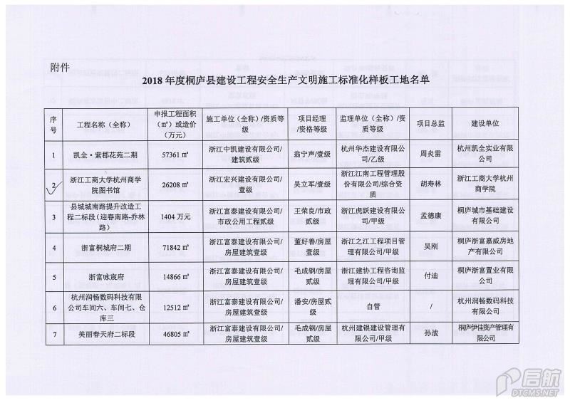 2018年度浙江省建設安全生產文明施工標準化樣板工地