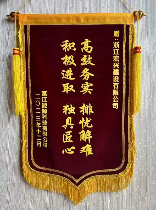 12月15日上午,公司執行董事余冠佐和項目總工吳凱斌從吉利集團“桐廬年產12GWH動力電池項目”建設單位領導手中接到了一面沉甸甸的錦旗,錦旗上賀然印著:“高效務實 排憂解難 積極進取 獨具匠心”十六個字,承載著業主對我司施工履約能力的肯定與認可,鼓勵著我們不忘初心、砥礪前行。
